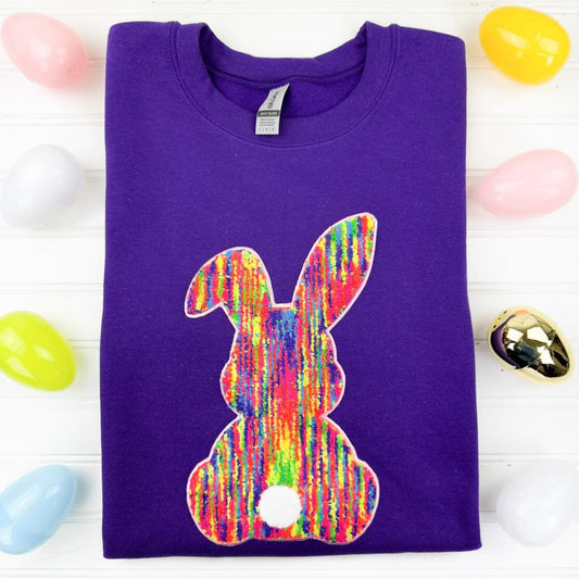 PREORDER: Rainbow Bunny Chenille Patch Sweatshirt in Three Colors
