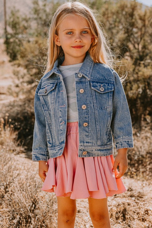 “Luvvey” Girls Contrast Heart Denim Jacket