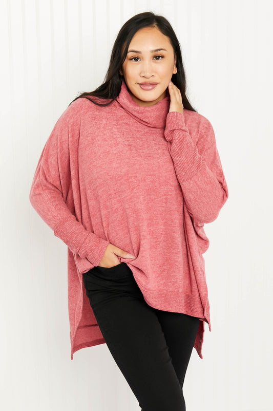 Basic Bae Full Size Ribbed Exposed Seam Mock Neck Knit Top