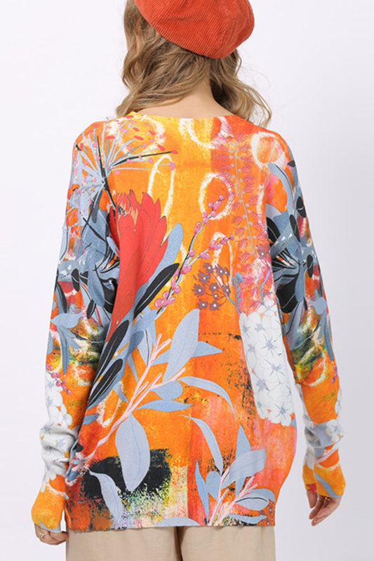 Sold outFloral Pattern Ribbed Trim Cardigan