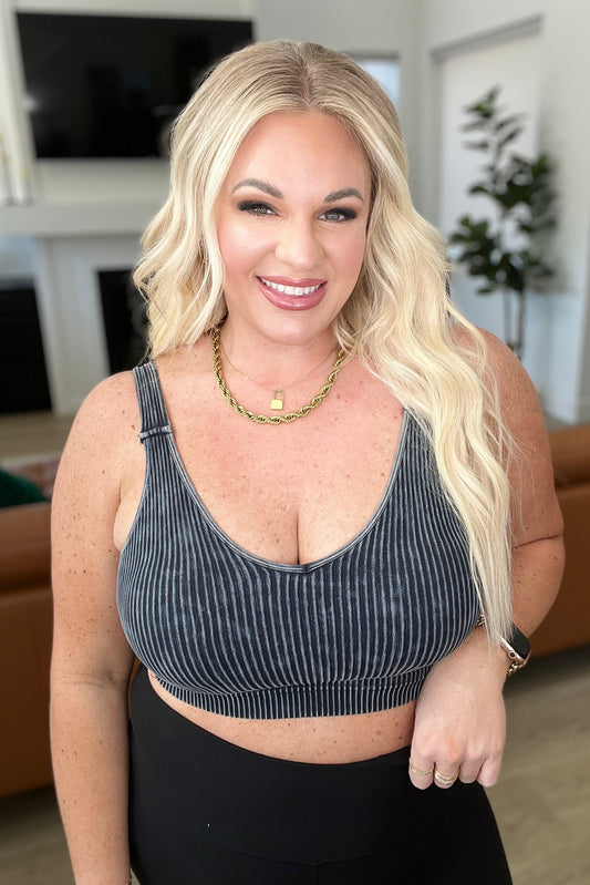 Mineral Wash Ribbed Round Neck Top in Sky Blue